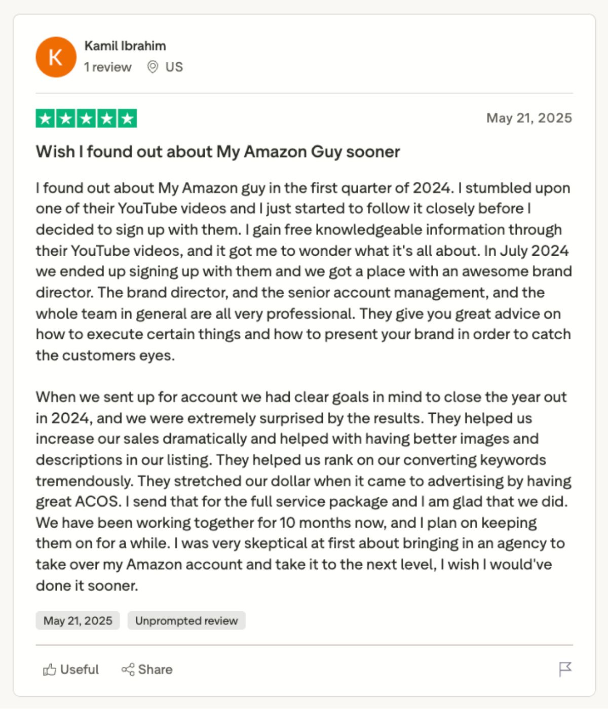 Trustpilot exists to help potential clients evaluate businesses through authentic, verified reviews. Based on feedback from real My Amazon Guy clients, many highlight strong communication, proactive support, and measurable results in sales and brand growth.