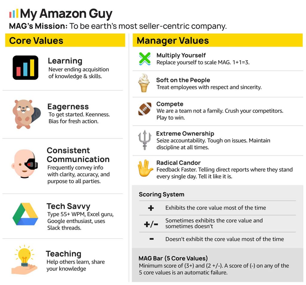 Many companies put clients or customers at the top of their pyramid. At My Amazon Guy we put employees first. We fire clients who disrespect our staff. We invest in people long term.